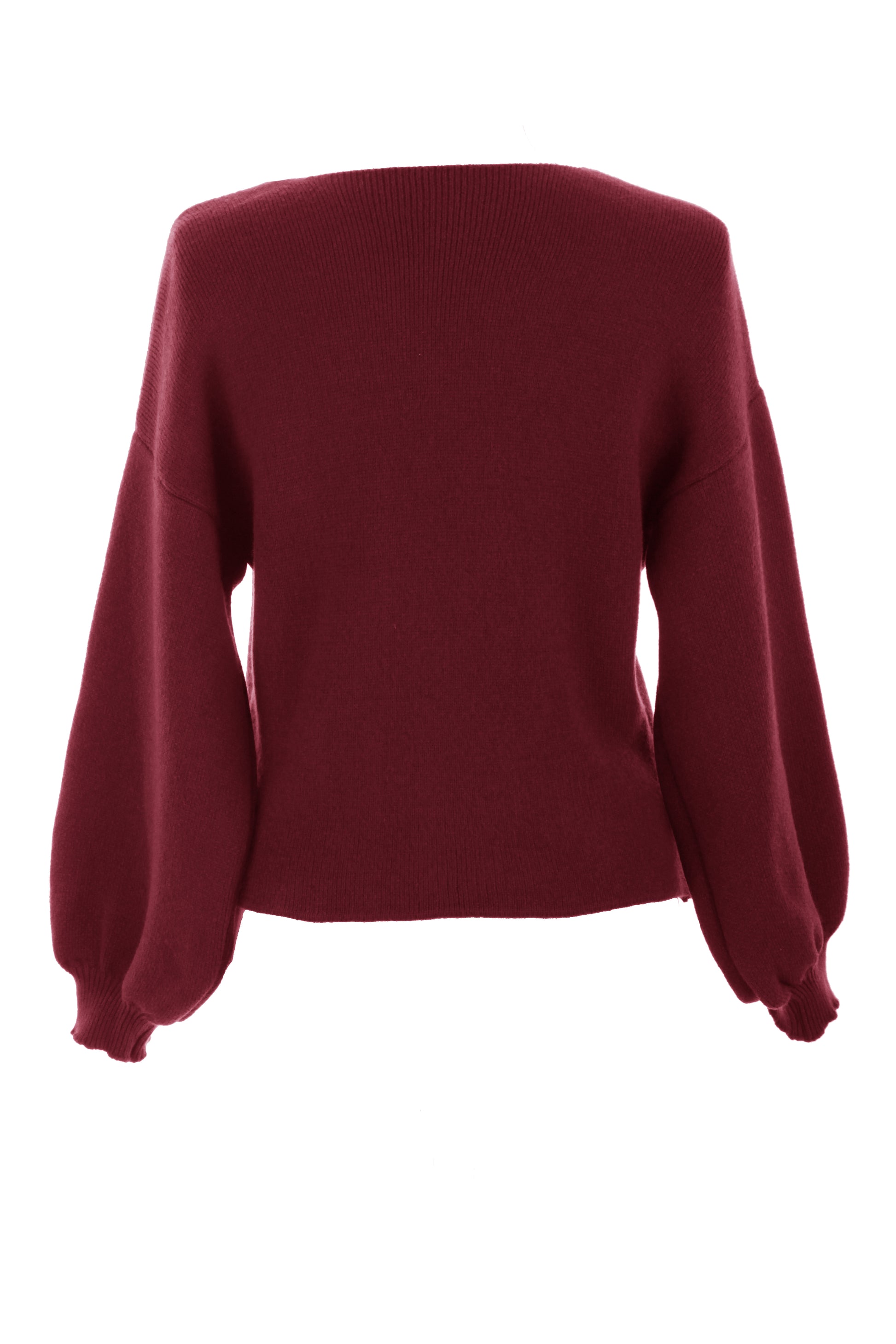 Crafted in a rich shades, this versatile piece features an elegant V-neck design and statement balloon sleeves that create a dramatic silhouette.